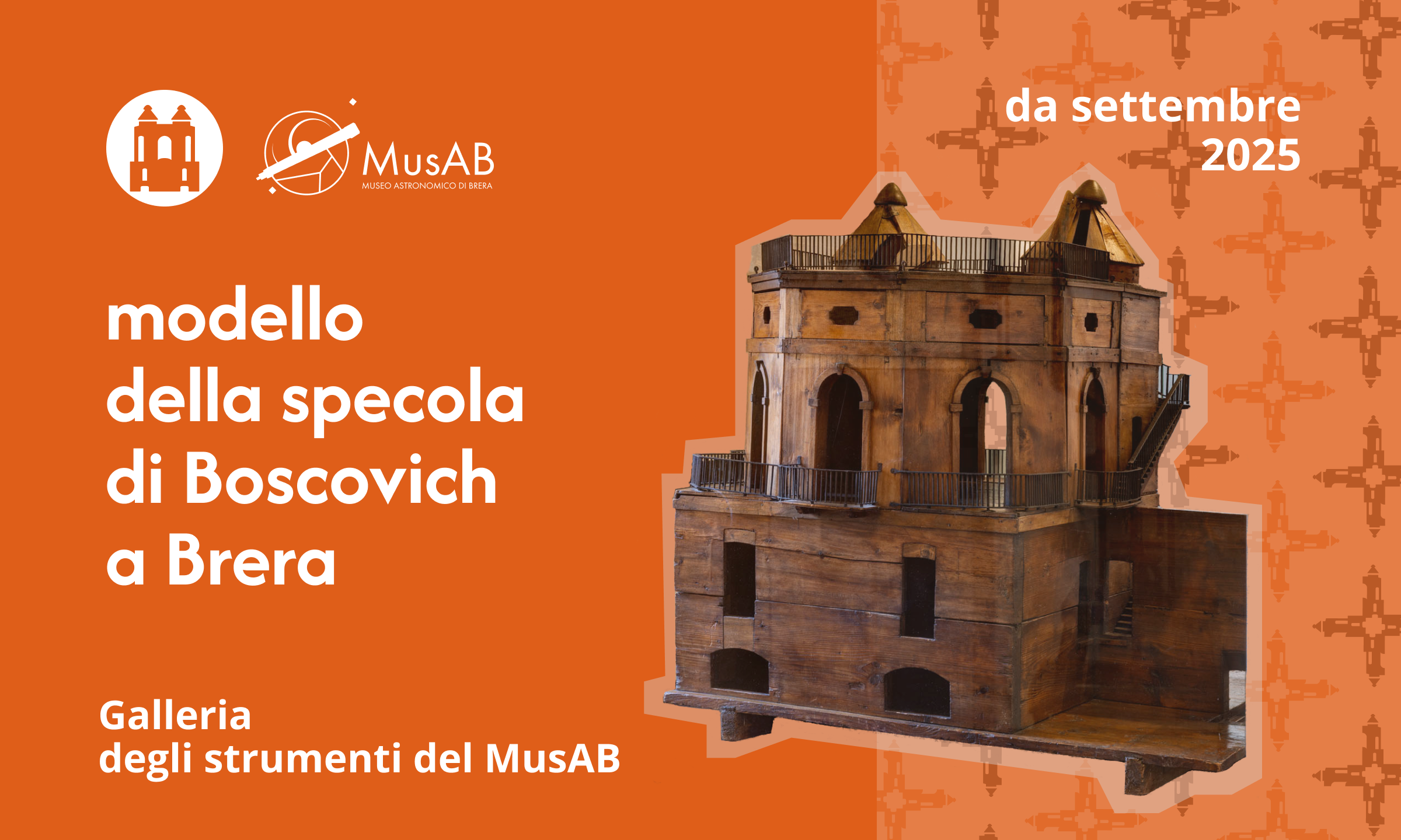 Per l’occasione, il percorso espositivo verrà arricchito dalla presenza del modello ligneo della torre osservativa progettata da Ruggero Boscovich e costruita nel 1765 sui tetti del Palazzo di Brera. Il modello, che rappresenta la prima sede dell’Osservatorio, farà ritorno a Brera per la prima volta dopo decenni di assenza.